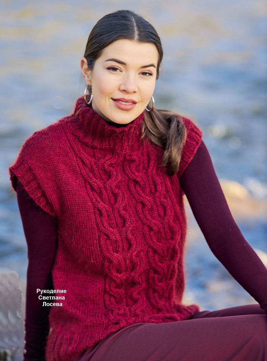 Кофты и пуловеры Очаровательный образ спицами с выразительными рельефными узорами и аккуратными косами, создающими объемный эффект. 12.10.2025 0