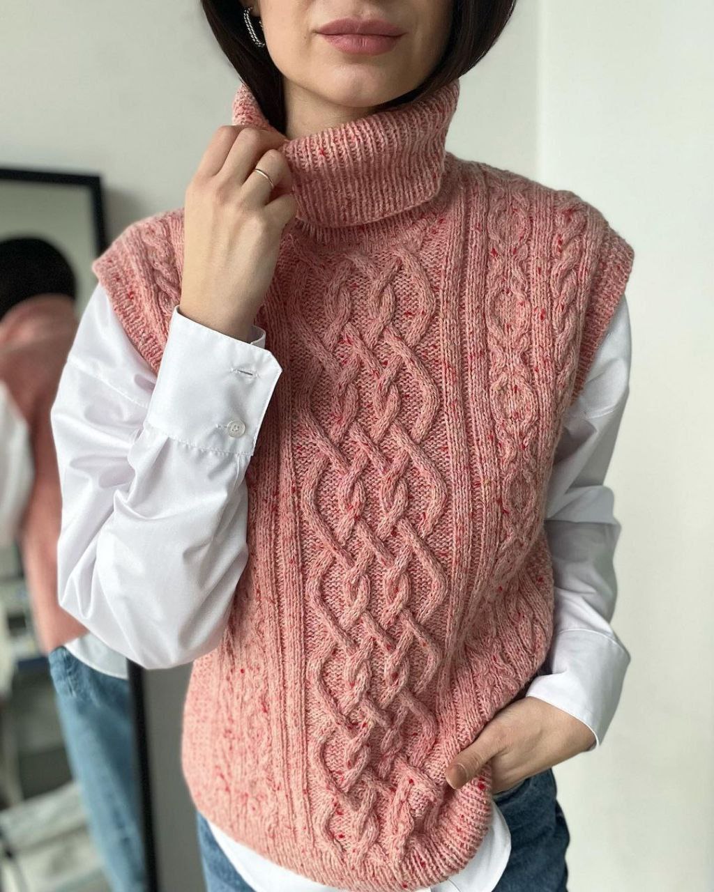 Жилет с аранами и высоким воротником