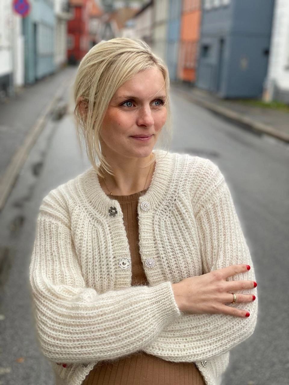 Вязаная белая кофта с узором из кругов