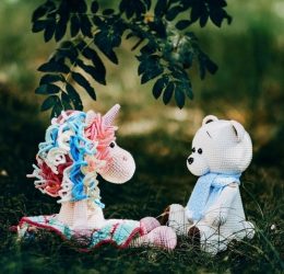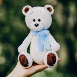 При желании можно связать Мишке шарфик спицами или крючком, цвет на Ваше усмотрение.