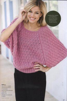 На более тонкие спицы набрать 89(93)101(105)п. Вязать резинкой 2/2 (начиная с двух изнаночных) — 9 (9) 10 (10) см, сменить спицы на более толстые и по изнаночной стороне работы начать вязание ажурного узора по схеме I (то есть нечетные ряды схемы — на изнаночной стороне изделия). По схеме провязать первые 4п слева , затем повторять раппорт узора 21 (22) 24 (25) раз, закончить 2 последними петлями схемы (справа). На спицах 111(116)126(131)п. Повторять 1-12 ряды схемы I. Примечание: Когда ряды 1-7 ажура связаны, начать убавления для реглана с 8 ряда ажура по схеме II. Убавлять в каждом 3-ем ряду по 1п с обеих сторон, всего 35(37)37(40) раз (убавления для реглана отмечены на схеме II красным). За время вязания 12 рядов с каждой стороны работы всегда убавляется 5п. Перед тем как отложить работу последним вязать ряд по изнанке работы (схема I ряд 6 или 12). Оставить петли в ожидании.