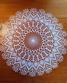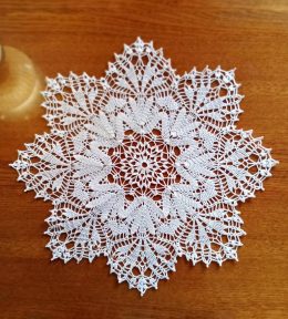 Эта изысканная салфетка выполнена в технике ручного вязания. Белоснежная нить образует сложный узор, напоминающий снежинку, с деликатными переплетениями и изящными краями. Центральная часть украшена цветочным мотивом, который плавно переходит в более сложные геометрические фигуры. Салфетка станет отличным дополнением к классическому интерьеру, придавая ему нотку уюта и элегантности.