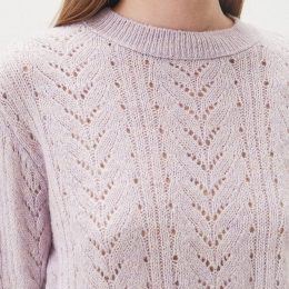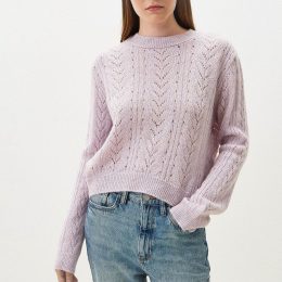 Очаровательный образ с этим свитером, выполненным из мягкой пряжи нежного оттенка. Уникальный ажурный узор в виде крупных кос придает изделию воздушность и изысканность, а плотный воротник обеспечивает комфорт и аккуратность посадки. Идеальный выбор для стильного и теплого повседневного образа.