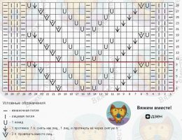 Раппорт узора составляет 28 петель по ширине полотна и 10 рядов по высоте, ориентируйтесь на красную рамку.