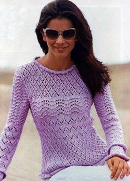 Ажурный узор А: число петель кратно 6 + 3 + 2 кром. Вязать по схеме 1, на которой приведены только лиц. р., 8 изн. р. все петли и накиды вязать изн. Начать с 1 кром. и с петель перед раппортом, повторять раппорт, закончить петлями после раппорта и 1 кром. Повторять с 1-го по 12-й р.