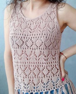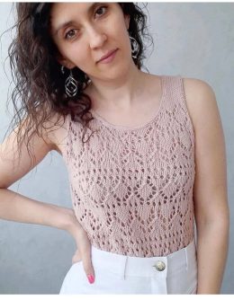 Легкий и воздушный топ с изящным узором, который выглядит так, будто связали его на одной чашке кофе и большом вдохновении. Идеально для теплых дней и хорошего настроения.