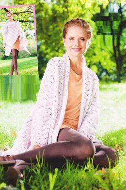 Время пальто и курточек прошло, теперь вашим спутником на прогулках станет нежный жакет-кардиган из лёгкой меланжевой шерсти. Он вяжется достаточно просто: основная часть имеет форму прямоугольника, к которому потом пришиваются рукава.