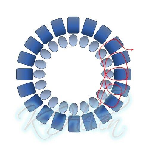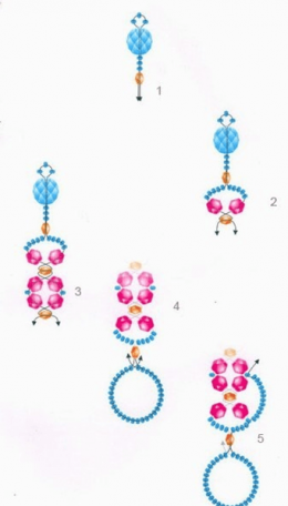 2. Плетение бусины начинается с замыкания в колечко пяти бусин первого ряда верхней части.