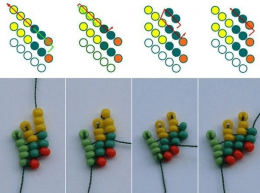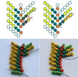 1. Цифры на изображениях бисерин обозначают ряды. По законам мозаичной техники бисеринки второго ряда вставляются между бисеринами первого, бисерины третьего — между бисеринами второго и так далее.