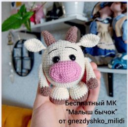 Этот милый рукодельный бычок, выполненный крючком, очаровывает своими большими добрыми глазами и розовой мордочкой. Нежные белые и коричневые оттенки подчеркива...