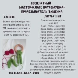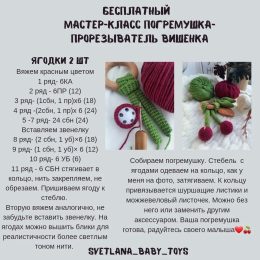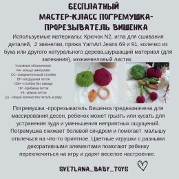 Посмотрите на эту очаровательную ручную погремушку "Вишенка", созданную с любовью и вниманием к каждой детали. Выполненная из мягкой пряжи ярких, насыщенных цве...