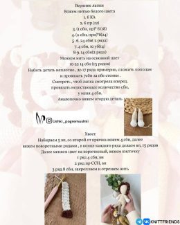 Уникальные детали включают крупные ушки, объемный мордочку и пушистый хвост, создающие уютный и милый образ. Текстурированная вязка и аккуратные швы подчеркиваю...