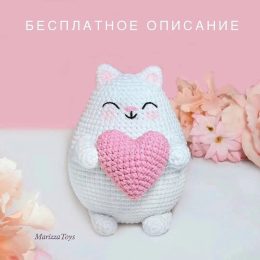 Очаровательный рукодельный котик выполнен в стиле амигуруми. Белоснежное тело и розовое сердечко в лапках добавляют нежности. Этот милый друг станет символом по...