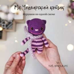 Очаровательная игрушка ручной работы, выполненная в стиле амигуруми. Фиолетово-розовая полосатая расцветка напоминает волшебного Чеширского кота. Изделие украше...