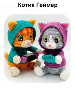 Эти очаровательные вязаные котики, облачённые в стильные худи, демонстрируют уникальный подход к рукоделию. Один котик в оранжево-зелёной одежде, другой — в сер...