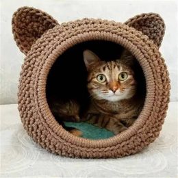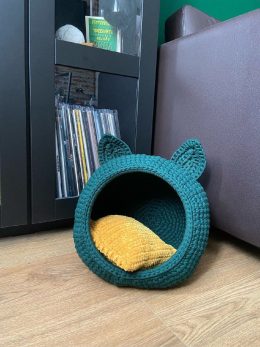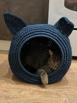 Структура вязания придает изделию уникальную текстуру, создавая комфортное укрытие для питомца. Используемая пряжа и техника вязания обеспечивают прочность и до...