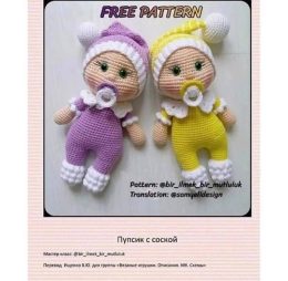 Какое очаровательное вязаное изделие! Эта кукла выполнена из нежной, пушистой пряжи и одета в милый розовый комбинезон. Особое внимание привлекает аккуратный ба...