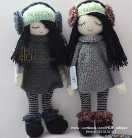 Куколки амигуруми. Девочки очень замерзли и закрыли глазки. На ушах у ник теплые наушники. На ногах теплые сапожки.