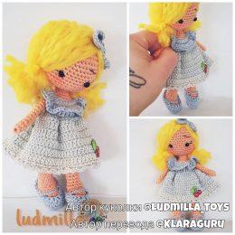 Автор куклы ludmila_toys Игрушка не большого размера в виде девочки в сарафане. На ногах вязаные сандалики которые можно снимать.