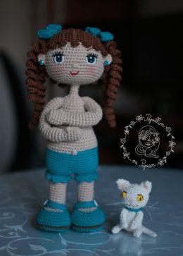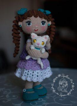 Милая кукла Алекса амигуруми с котенком связана из хлопковой пряжи крючком № 2,5. Для котенка использовался такой же крючок и пряжа. Платье связано крючком мень...