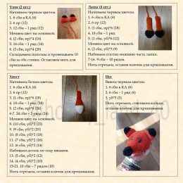Описание вязания. Автор: Оля Лукошкина (lukoshkina.o)Описание автора:Голова: 1р. - 2 вп -6 сбн (6 сбн в кольцо амигуруми) 2р. - 6 приб. = 12 сбн 3р. - 6 приб =...