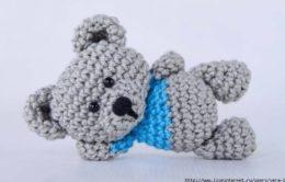 Интересные вязаные медведи синего цвета.