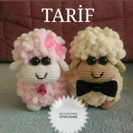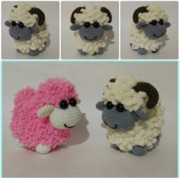 Очаровательные вязаные овечки с объемным пушистым телом и ярким вязаным шарфом, выполненные в технике амигуруми. Особое внимание уделено деталям лица с выразите...
