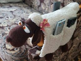 Этот трогательный барашек может хранить пульты от всей техники в доме. Его шерстка пушистая и мягкая, а глазки выражают постоянное удивление. Красивый бант укра...