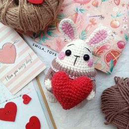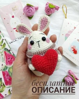 Этот очаровательный зайка, связанный крючком, воплощает нежность и заботу. Уникальность изделия подчеркивают розовые ушки и добрые глазки, а яркое сердце в лапк...