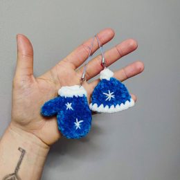 Эти крошечные вязаные аксессуары дарят тепло даже в миниатюре. Снежинки украшают синюю варежку и шапочку, добавляя зимнее очарование. Яркий оттенок и мягкая тек...