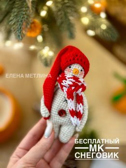 Этот милый снеговичок, связанный с любовью, согреет ваше сердце. Его ярко-красная шапка и шарф придают ему праздничный вид, а маленькая морковка-нос добавляет о...