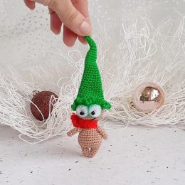 Этот очаровательный вязаный эльф, кажется, потерял все кроме своей праздничной шапки и яркого шарфика! Стоит среди блестящих шаров, он готов украсить любое ново...
