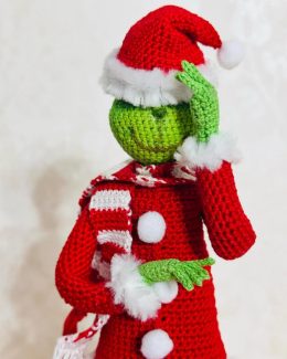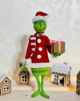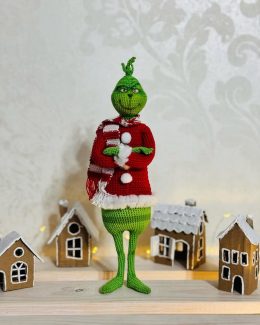 Даже самый колючий может стать мягким, если его связать с душой. Этот вязаный Гринч в красном свитере и полосатом шарфе выглядит как настоящий праздничный вориш...