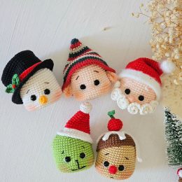 Вдохновитесь атмосферой праздника с этими очаровательными вязанными игрушками! Каждая фигурка уникальна: коровка с красным сердцем на шее, эльф в полосатом зеле...