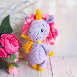 Симпатичный горошек на бантике этого милого фиолетового единорога добавляет очарования. Яркая грива из розовых и жёлтых кудряшек и забавный рог создают сказочну...