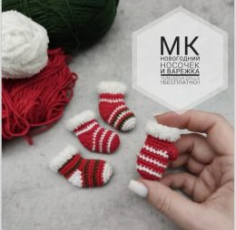 Эти крошечные вязаные носочки и варежка — словно ода уюту и празднику. Сочетание красного и белого, в обрамлении пушистой каймы, создает атмосферу тепла и сказк...