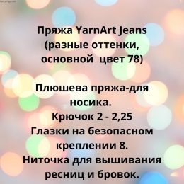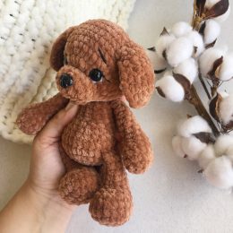Этот очаровательный вязаный щенок, созданный из мягкой текстурной пряжи, словно приглашает к обнимашкам. Его большие, выразительные глаза придают игрушке живост...