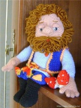 Эта восхитительная вязаная кукла поражает своими деталями и мастерством исполнения. Роскошные рыжие волосы и борода создают образ сказочного персонажа. Яркий на...
