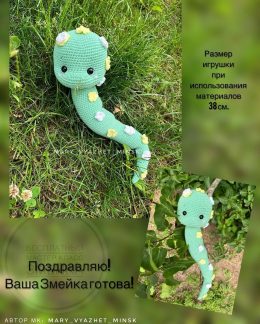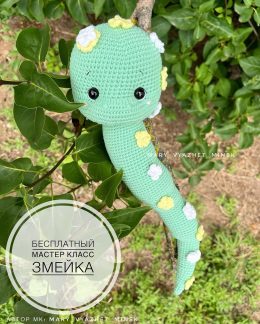 Приветствуем нашего вязаного друга! Эта очаровательная змея с большими блестящими глазами и забавными цветочками на спинке готова украсить любой интерьер или ст...