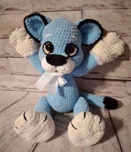 Этот уникальный вязаный лев создан из мягкой пряжи нежно-голубого цвета, которая придаёт ему очаровательный и дружелюбный вид. Его большие, выразительные глаза...