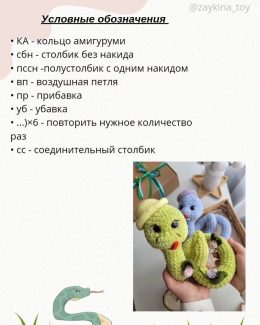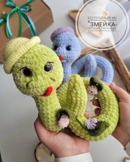 Эта очаровательная вязаная змейка, выполненная в салатовом цвете, носит стильную шляпку, придающую ей особый шарм. С выразительными глазами и кокетливой улыбкой...