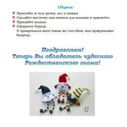 Этот вязаный персонаж очаровывает своей пушистой бородой и яркой красной шапкой с помпоном. Его полосатые зелено-белые штаны добавляют праздничное настроение, а...