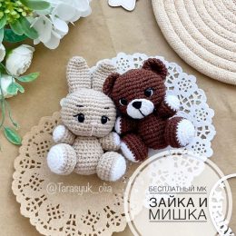 Какие милые создания! Эти очаровательные вязаные игрушки покоряют с первого взгляда. Великолепная работа с деталями: у зайчика обаятельные ушки, а у медвежонка...