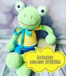 Этот милый вязаный лягушонок обязательно станет вашим лучшим другом! Обратите внимание на его яркие глаза и очаровательный голубой бант, которые придают ему осо...