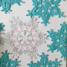 Погрузитесь в волшебство ручного творчества с этими изящными вязаными снежинками! Яркие оттенки бирюзы и мягкой зелени создают ощущение зимней сказки, а сложные...