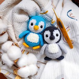 Маленькие лапки этих очаровательных вязаных пингвинов добавляют им особого шарма. Ярко-голубой и серый пушистики выполнены с удивительной тщательностью, а их бе...