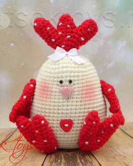 Контраст между белым телом и ярко-красными лапками сразу привлекает внимание. Забавные сердечки на голове и животике, а также маленький бантик добавляют шарма э...