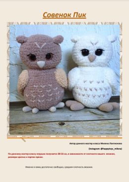 Эта пушистая совушка с большими глазами выглядит так, будто она готова рассказать вам все тайны мира. Ее мягкие крылышки и милый клювик делают ее идеальным комп...
