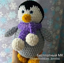 Этот симпатичный вязаный пингвин согреет ваше сердце! Яркий фиолетовый шарф и пушистые лапки добавляют ему особое очарование. Идеальный подарок для холодных дне...