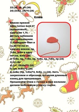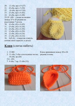 Посмотрите на этого очаровательного вязаного птенца! Ярко-оранжевая грудка и серые крылышки придают ему особенный шарм. Какая деталь привлекает ваше внимание бо...
